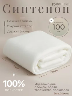 Синтепон рулонный для рукоделия и игрушек 100х150см 100гр