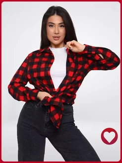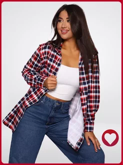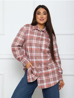 Рубашка женская в клетку с длинным рукавом большие размеры