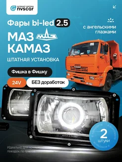 Фары bi-led с ангельскими глазками Маз, Камаз 24V