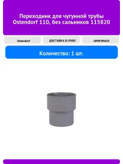 Переходник для чугунной трубы 110, без сальников, 1 шт