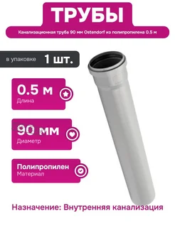 Канализационная труба белая, 40x1000 мм, 1 шт