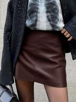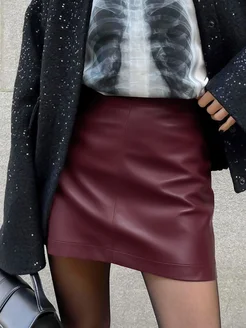 Юбка кожаная короткая мини из экокожи