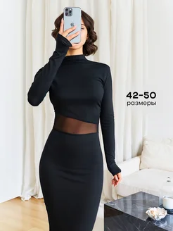 Платье праздничное вечернее облегающее с сеткой на осень