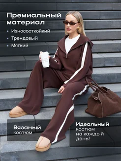 Костюм вязаный оверсайз с брюками трикотажный шоколадный