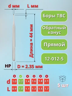 Бор зубной твердосплавный для прямого наконечника, 5 шт