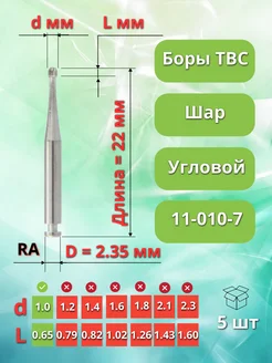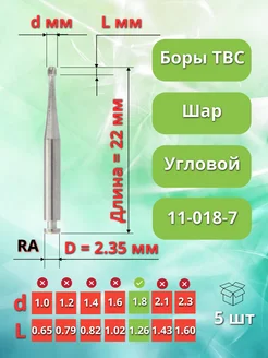 Бор зубной твердосплавный для углового наконечника, 5 шт