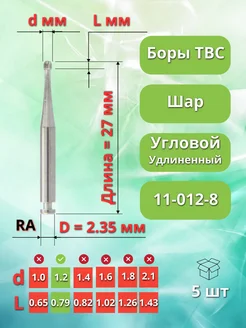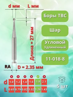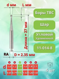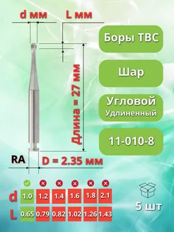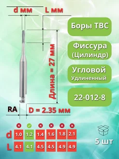 Бор ТВС зубной удлиненный для углового наконечника, 5 шт
