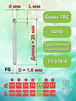 Бор ТВС зубной удлиненный для турбинного наконечника, 5 шт