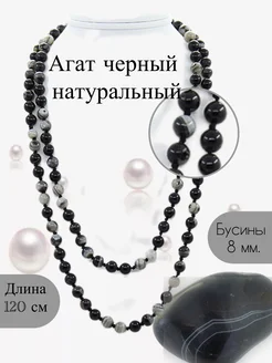 Бусы длинные черные из натурального агата