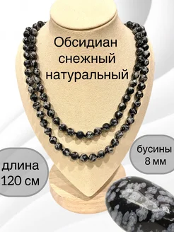 Бусы длинные из натурального обсидиана