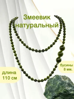 Длинные бусы из натурального змеевика