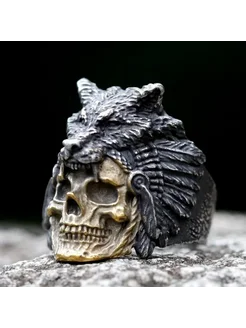 Кольцо Перстень Череп Зомби Индеец Кастанеда Шкура Волка