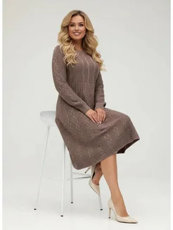 Платье миди вязаное с длинным рукавом