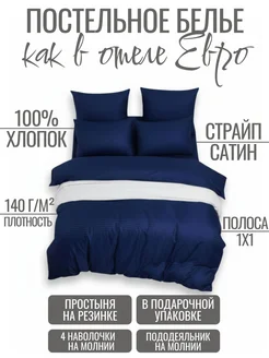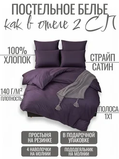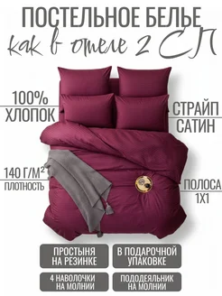 Постельное белье 2 спальное на резинке 140х200 страйп сатин