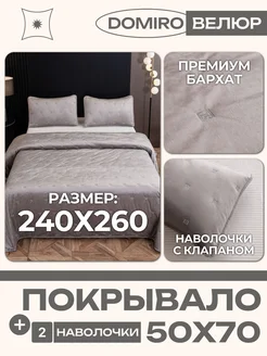 Покрывало стеганое на кровать и диван велюр бархат 240x260