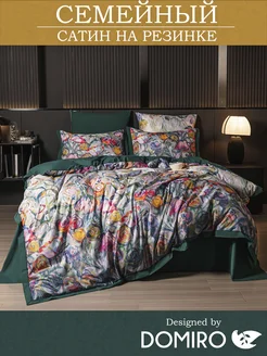Постельное белье семейное на резинке 160х200 сатин цветы