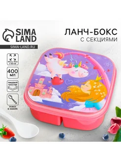 Ланч - бокс квадратный с секциями и ложкой "Единорог"