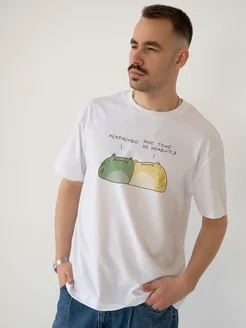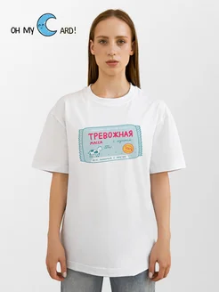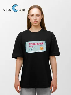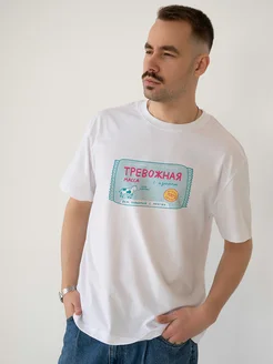 Футболка оверсайз базовая с принтом надписью Тревожная масса
