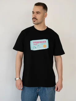 Футболка оверсайз базовая черная с принтом Тревожная Масса