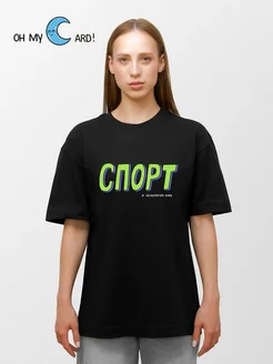 Футболка оверсайз базовая черная с принтом надписью Спорт