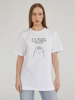 Футболка оверсайз базовая белая с принтом надписью Уходите