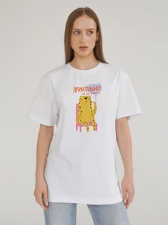 Футболка оверсайз базовая белая с принтом надписью Прикольно
