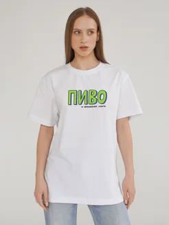 Футболка оверсайз базовая белая с принтом надписью Пиво