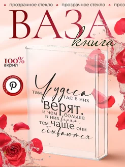 Пластиковая ваза для цветов и сухоцветов прозрачная Книга