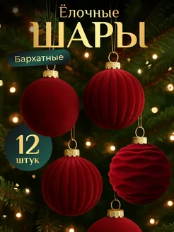 Шары новогодние бархатные украшение на ёлку 12 шт