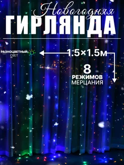 Гирлянда штора 1,5х1,5 разноцветная, 98 Led