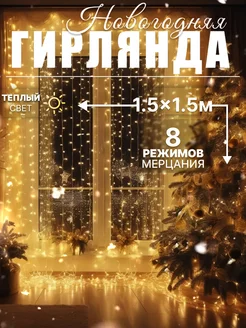 Гирлянда штора 1,5х1,5 желтый свет, 98 Led