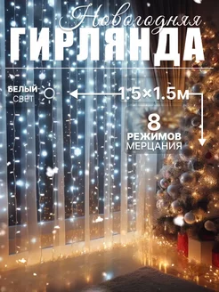 Гирлянда штора 1,5х1,5 белый свет, 98 Led