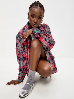 Рубашка в клетку пинтерест оверсайз у2к теплая длинная