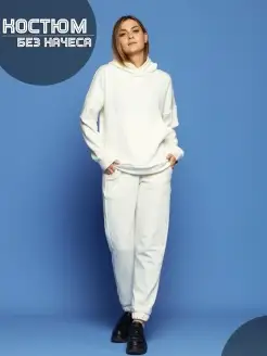 Спортивный костюм без начеса с капюшоном белый