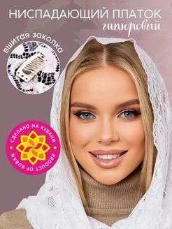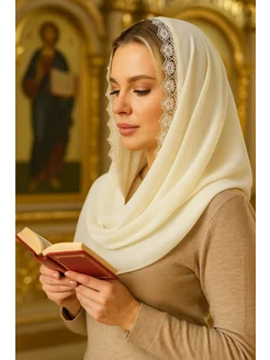 Платок для храма церковный ниспадающий "Счастье" кремовый