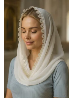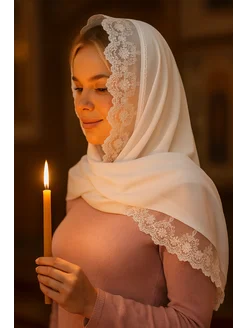 Платок для храма церковный ниспадающий "Радость" кремовый