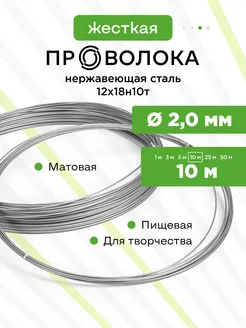 Проволока нержавеющая жёсткая 2,0 мм 10 метров, 12Х18Н10Т