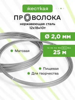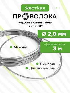 Проволока нержавеющая жёсткая 2,0 мм 5 метров, 12Х18Н10Т