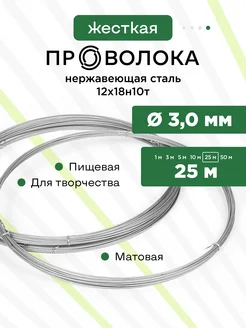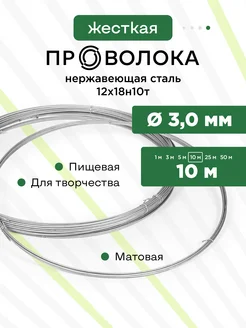 Проволока нержавеющая жесткая 3,0 мм 10 метров, 12Х18Н10Т