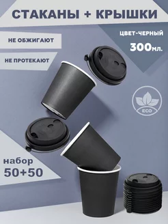 Стаканы одноразовые бумажные черные 300 мл 100 шт