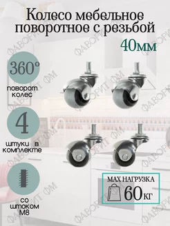 Колеса поворотные мебельные шар с резьбой М8 40мм
