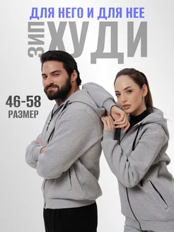 Худи толстовка больших размеров на молнии с капюшоном теплый