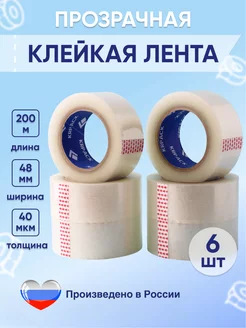 Скотч прозрачный, клейкая лента 200 м 6 шт