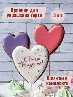 Пряники на торт сердечки "С днем рождения" (3 шт)