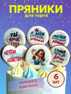 Пряники на торт для девочки "С днем рождения!" (6 шт)