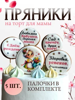 Пряники на торт маме и бабушке "Подарок на день рождения" ц