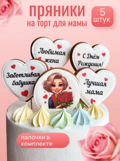 Пряники на торт маме и бабушке "Подарок на день рождения" с