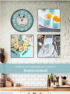 Комплект картин с часами "Зеленые яблоки" 60*60см