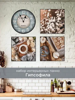 Модульная картина с часами "Кофе и хлопок" 60*60см