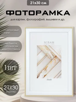 Фоторамка A4 21x29.7 см пластиковая золотая